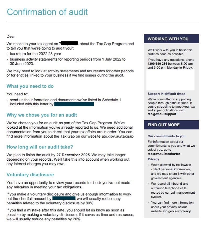 Example: ATO Tax Gap Program - Confirmation of Audit letter